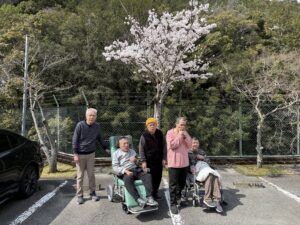 春のやわらかな陽ざしの中、皆さんと一緒にお花見を楽しみました。満開の桜を眺めながら、ゆったりとした時間を過ごし、自然の美しさに心が和らぎます。外の空気に触れることで気分転換にもなり、笑顔や会話が広がるひとときとなりました。これからも季節を感じられる行事を大切にしていきたいですね。